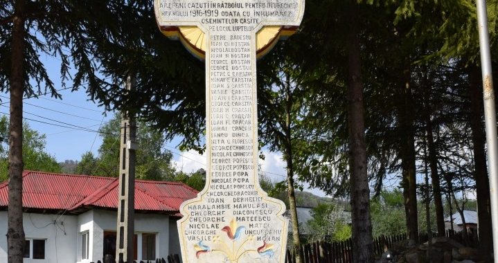 Este situat in Satul Arefu în curtea Bisericii Cuvioasa Parascheva. Monumentul a fost ridicat in anul 1935. Monumentul este orientat către S și este amplasat pe un soclu paralelipipedic zidit din piatră și tencuit cu ciment. Deasupra se află monumentul alcătuit dintr-un corp paralelipipedic, mai mic decât soclul și o